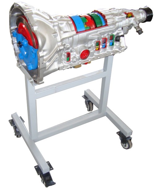 自動變速器實驗臺采用解剖形式,各運轉(zhuǎn)部位以及自動變速器內(nèi)部運轉(zhuǎn)情況均清晰可見。帶剎車的萬向輪便于實驗臺的移動和固定,臺架采用高檔噴塑。