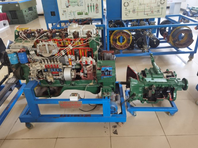 1.采用發(fā)動機實物總成進行機構切剖,充分展示發(fā)動機機部分的內外結構。