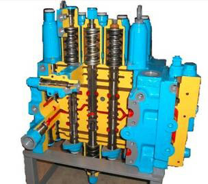 1.主控閥解剖模型采用翻新50型裝載機主控閥組總成(附件齊全)進行解剖,各零部件齊全,能夠全面的展示總成的內外結構。