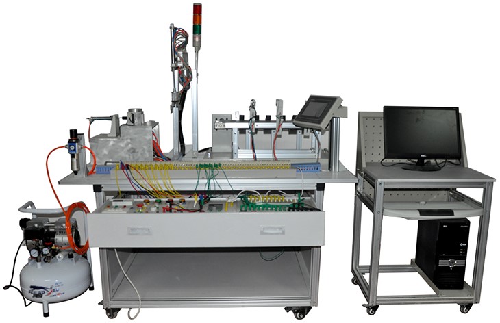 機電一體化實訓設備、機電一體化實訓裝置由由鋁合金導軌式實訓臺、典型的機電一體化設備的機械部件、PLC模塊、變頻器模塊、按鈕模塊、電源模塊、模擬生產設備實訓模塊、接線端子排和各種傳感器、計算機等組成。整體結構采用開放式和拆裝式,實訓裝置用于機械部件組裝,可根據現有的機械部件組裝生產設備,也可添加機械部件組裝其他生產設備,使整個裝置能夠靈活的按教學或競賽要求組裝具有生產功能的機電一體化設備。模塊采用標準結構和抽屜式模塊放置架,互換性強;同時還要求具有可拓展功能,可以組成更加大型的生產模擬系統,以配合各個用戶學校不同層次,不同專業的教學及培訓要求。