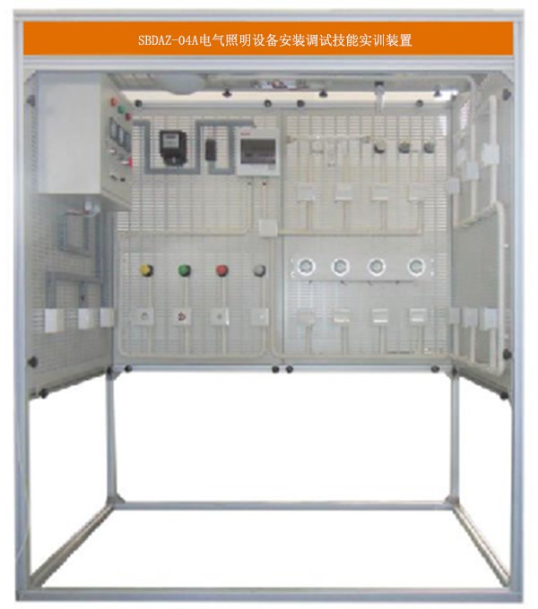 電氣照明實訓設備在結構上以建筑模型(包含了室內配電箱的安裝、室內線管敷設及管內穿線、電氣照明典型線路施工、各種燈具的安裝與接線)為基礎,由室內配電箱的安裝、線管敷設、線管穿線、各種燈具的安裝、典型照明電路的安裝、吊扇的安裝及調試、防雷接地裝置的安裝等部分組成,各部分既可獨立實訓,也可組合成系統綜合實訓。