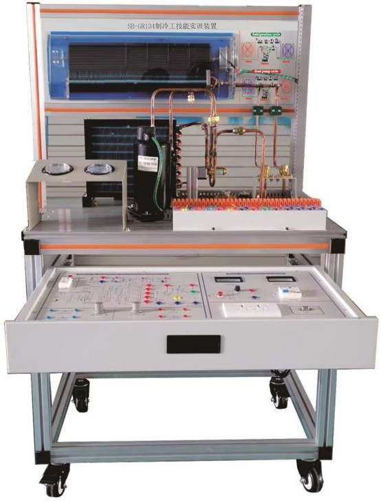 制冷制熱實訓設備、暖通空調實訓室設備、供暖與通風實訓室設備主要面向建筑環境與能源應用工程等相關土建類專業設立的專業性實驗室之一;多聯機的安裝與維修,產品類型包括家用空調多聯機、商用多聯機、設備用空調多聯機、多聯機、新風產品、除濕機等,可為學生提供完整的多聯機的安裝維修實操訓練提高他們的實踐動手能力。暖通空調實訓室設備可承擔建筑環境與能源應用工程相關專業《供暖通風與空氣調節》、《流體輸配管網》等相關課程的實驗教學任務。
